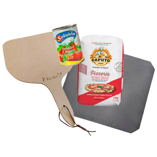 Pizzakit Start rekommenderas för den som vill komma igång och bara göra bra pizzor hemma. Pizzakit Tutti är för den som verkligen vill ha allt och inte behöva köpa till något vid senare tillfälle.